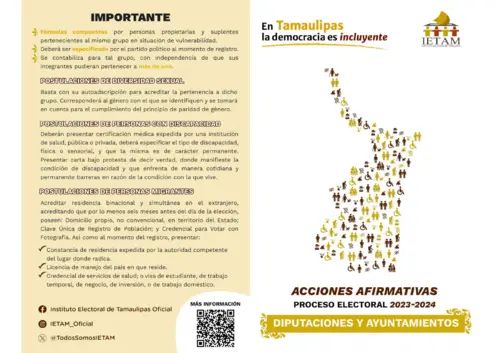 En esta sección encontrarás materiales de consulta sobre la implementación de las acciones afirmativas en los procesos electorales locales de Tamaulipas.