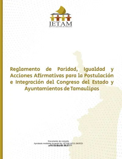 Reglamento de Paridad, Igualdad y Acciones Afirmativas para la Postulación e Integración del Congreso del Estado y Ayuntamientos de Tamaulipas